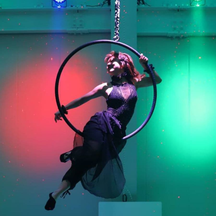 世界的アーティストHanae先生による特別レッスン。エアリアルフープを学べる場所は東北では杜スタだけ!身体の使い方や基礎を身につけ、新しい技に挑戦してみましょう。